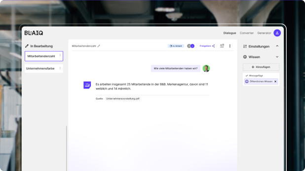 In BLAIQ vereinen wir 60 Jahre Markenerfahrung, innovatives KI-Wissen und deine Organisationsdaten.
